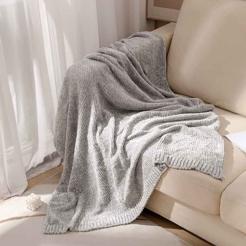 Chenille Yarn Knitted Blanket Gray Soft Comfortable B010