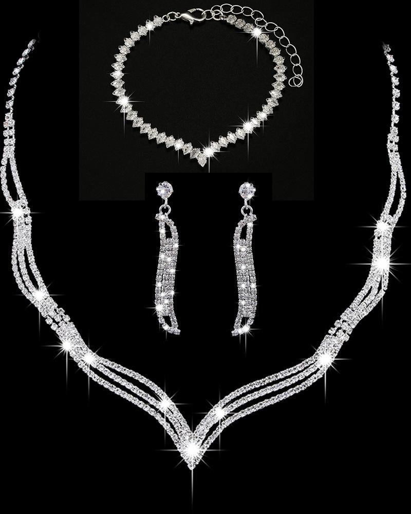 2PCS Rhinestone Decor Necklace & Dangle Earrings Wedding Bridal Jewelry Set
