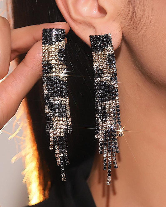 1Pair Rhinestone Colorblock Tassel Dangle Earrings