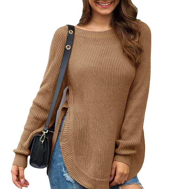 Women's Fall Long Sleeve Side Split Loose Blouses Casual Pullover Tunic Tops K294