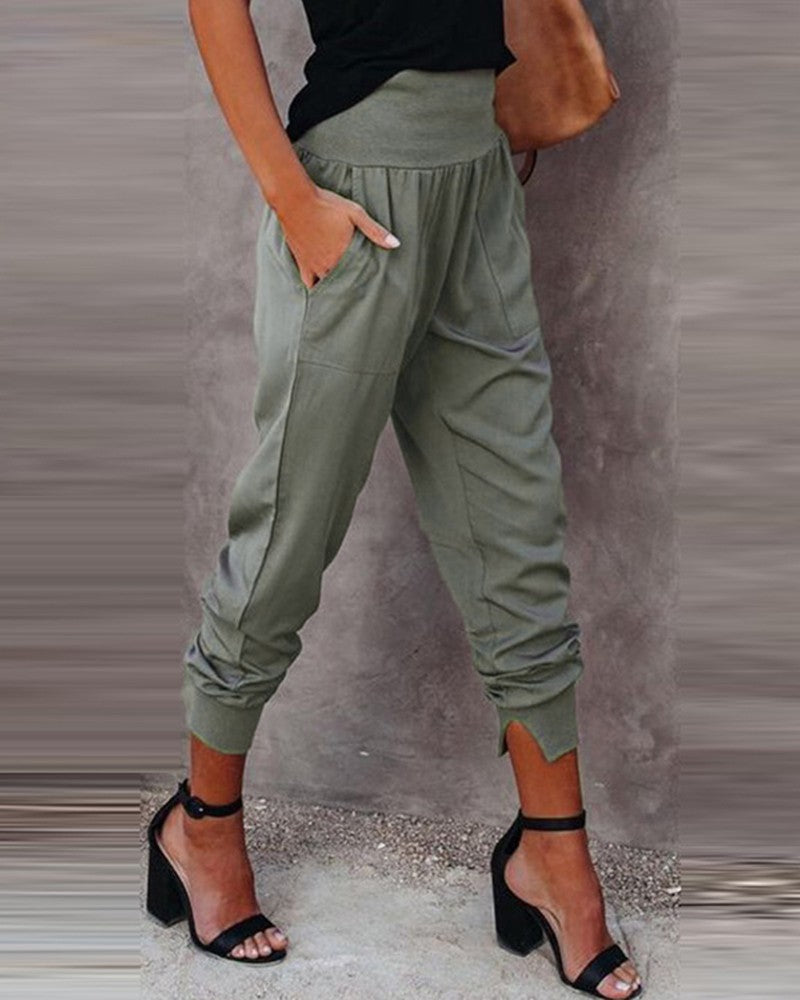 High Waist Drawstring Elastic Waist Wide Leg Casual Pants