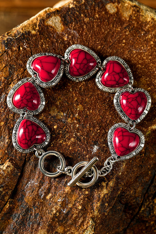 Fiery Red Western Heart Decor Alloy Bracelet