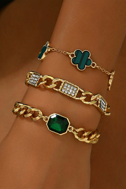 Gold St Patrick Gem Rhinestone Decor Adjustable Layered Bracelet