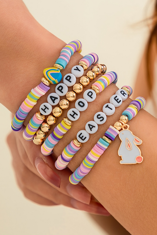 Gold Happy Easter Letter Beaded Elastic Multi Layer Bracelet