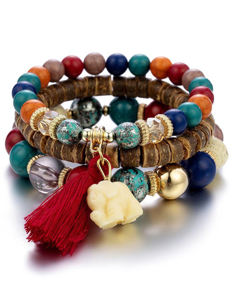 Pink MAMA LAUGH Beaded Stretch Multi Layer Bracelet