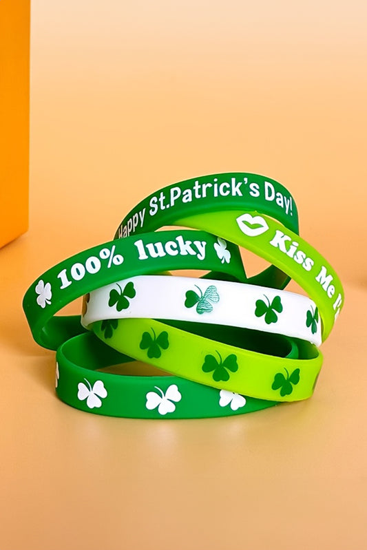 Green St Patricks Shamrock Letter Beaded Multi Layer Bracelet Set