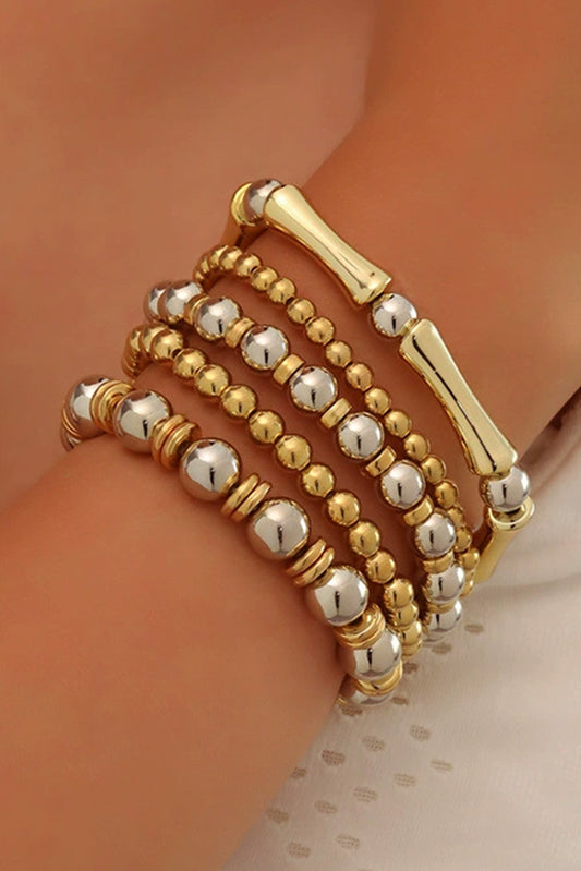 Gold 5Pcs Stackable Beaded Stretch Bracelets