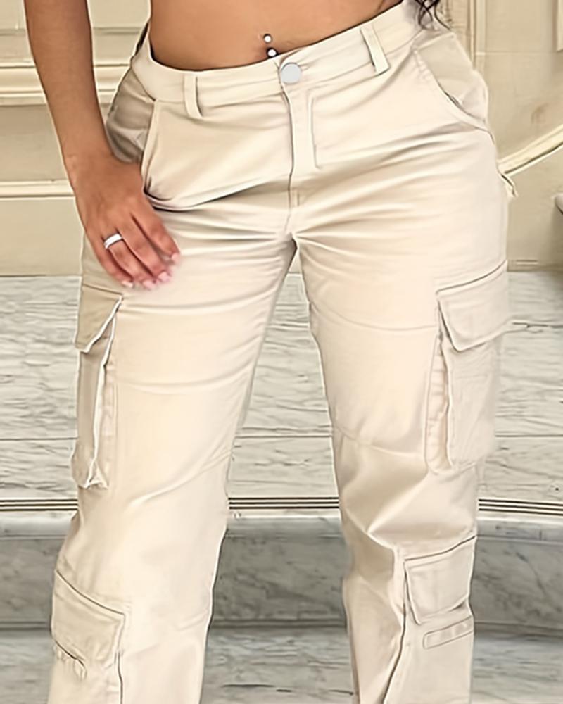 High Waist Pocket Design Cargo Pants