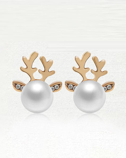 1Pair Christmas Elk Antler Shaped Pearls Earrings
