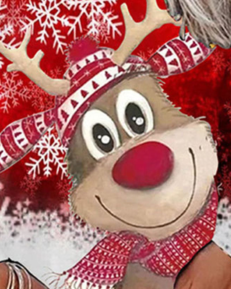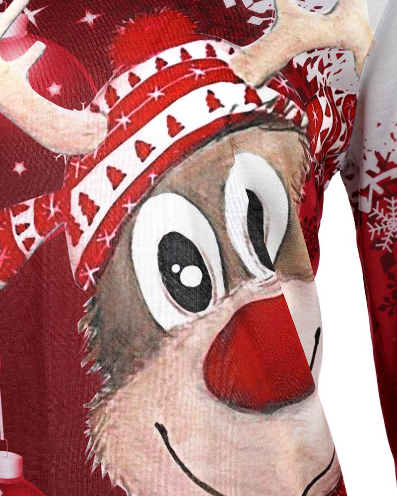 Christmas Tree Snowflake Elk Print Long Sleeve Top