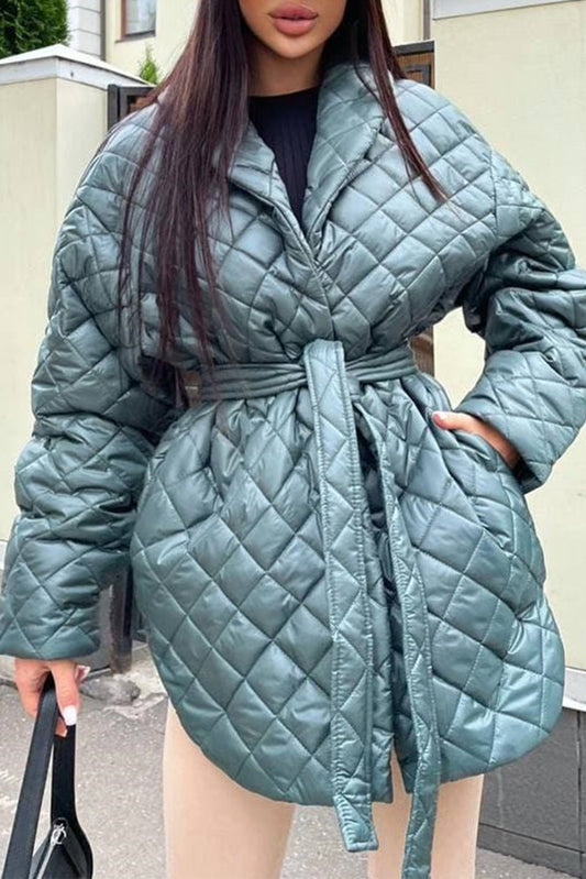 Plaid Pattern Reversible Fleece Teddy Coat Button Down Tied Detail Warm Jacket