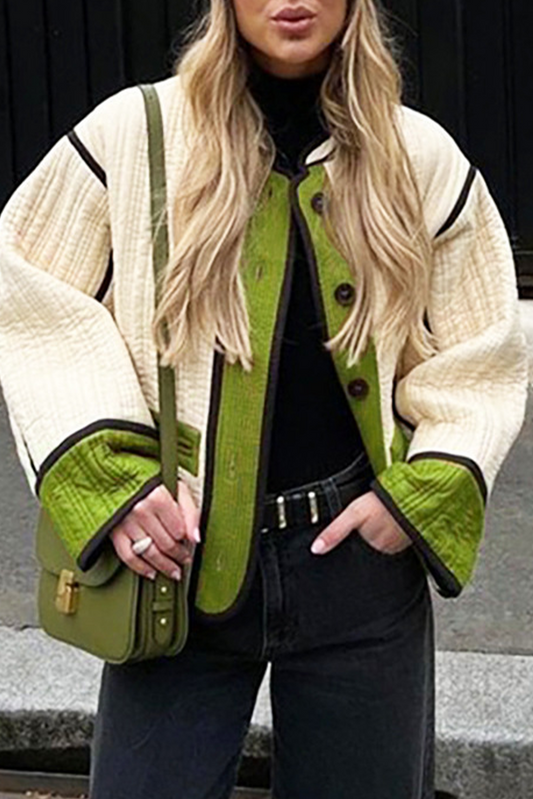 Stand Collar Long Sleeve Cable Textured Coat Button Front Jacket