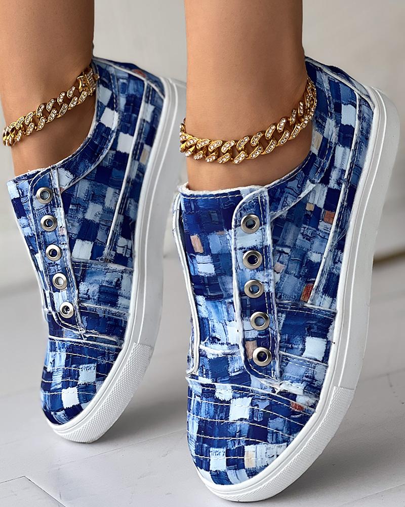 Denim Look Print Eyelet Canvas Sneakers
