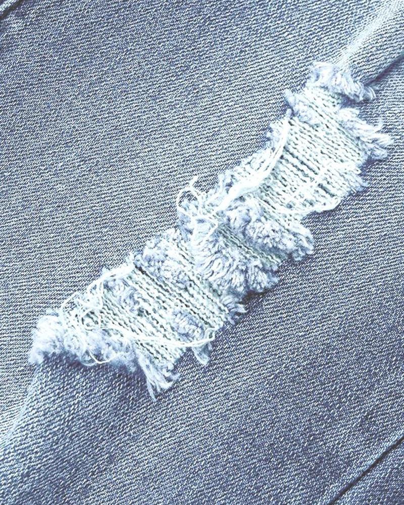 Zipper Fly Ripped Raw Hem Flared Leg Jeans