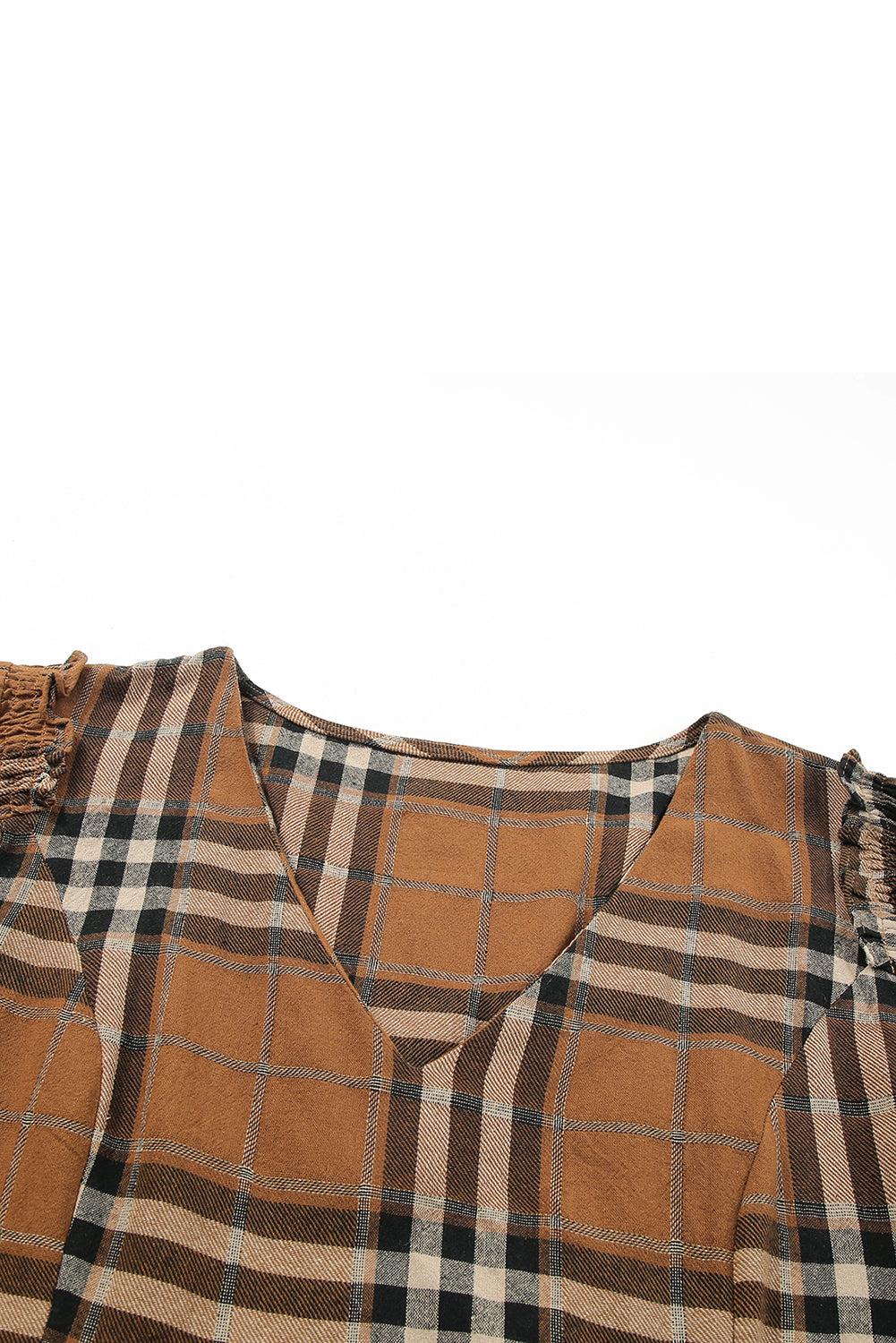 Brown Plaid Pattern Empire Waist Babydoll Dress