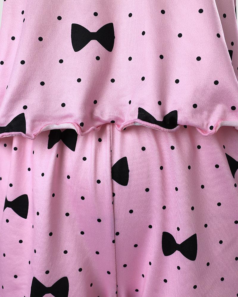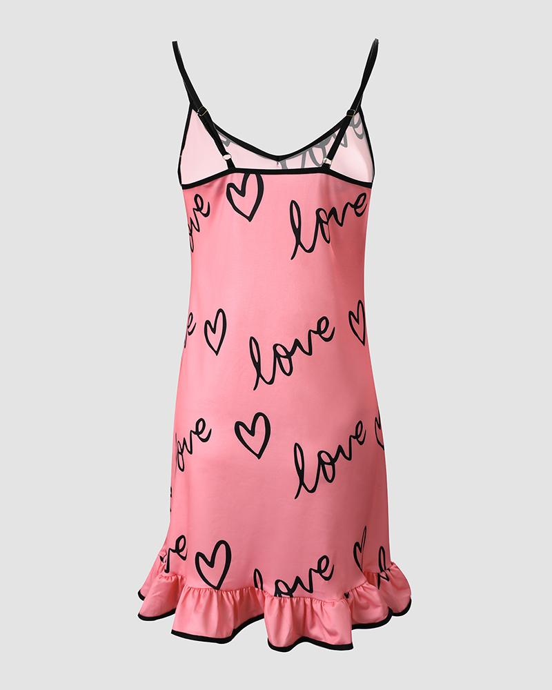 Butterfly Pattern Heart Print Contrast Lace Pajama Romper