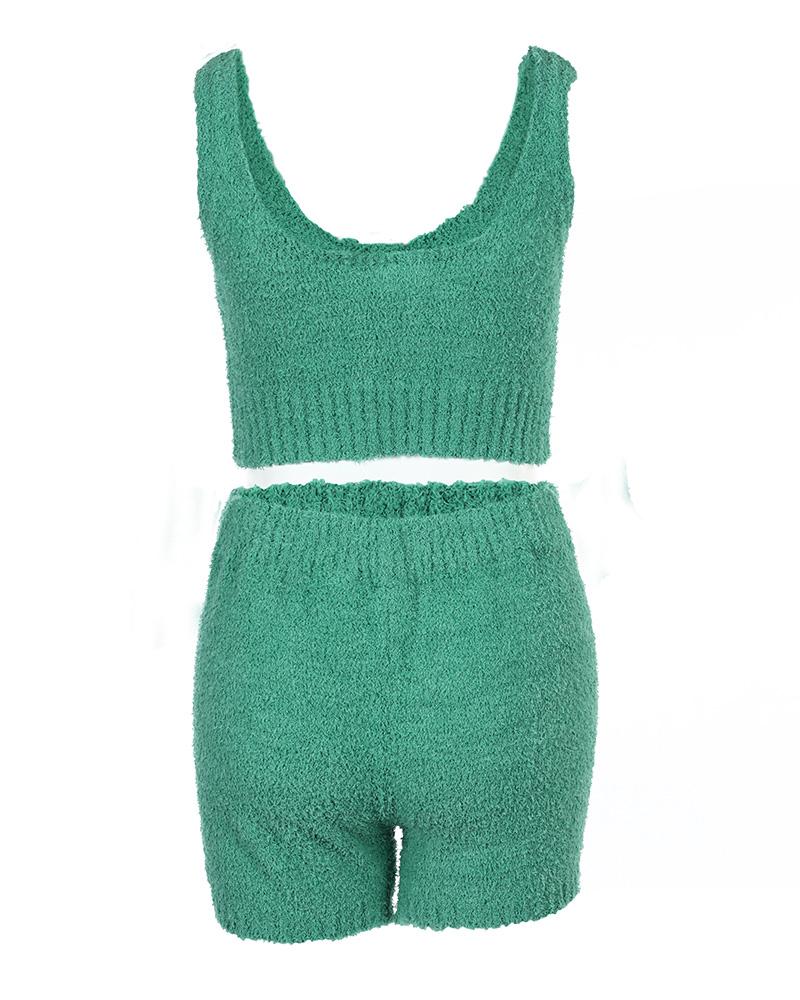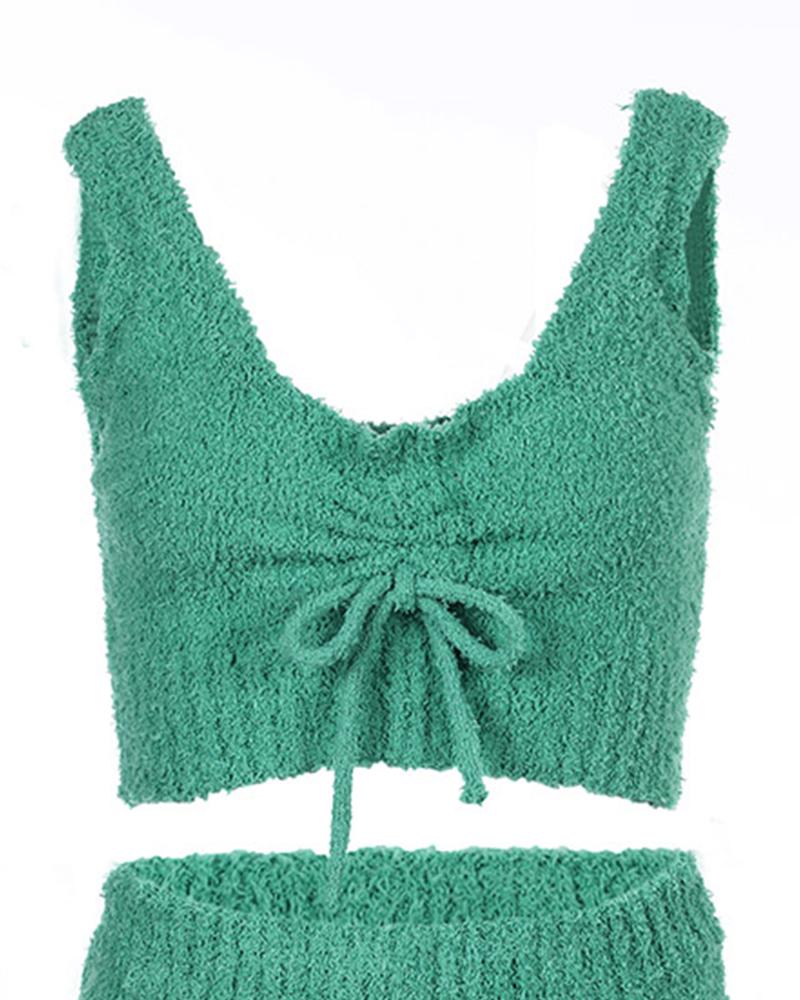 Fluffy Drawstring Ruched U Neck Cami Set Without Coat