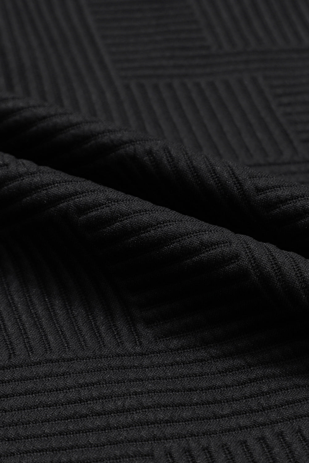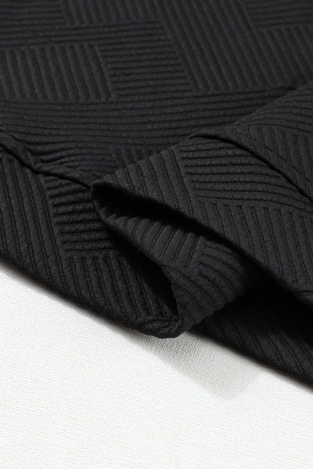 Black Textured Long Sleeve Top and Drawstring Shorts Set
