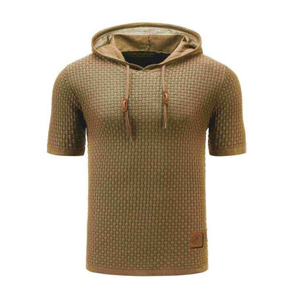 Men Hooded Sweatshirt Short Sleeve Solid Knitted Hoodie Pullover Sweater G081