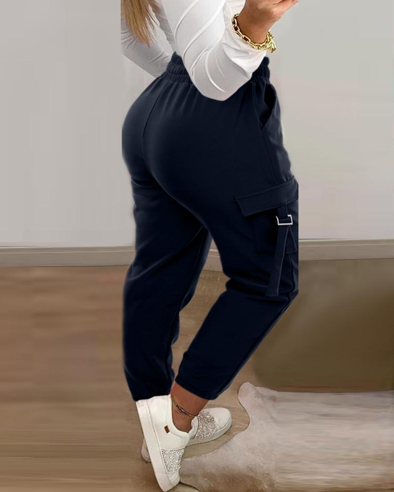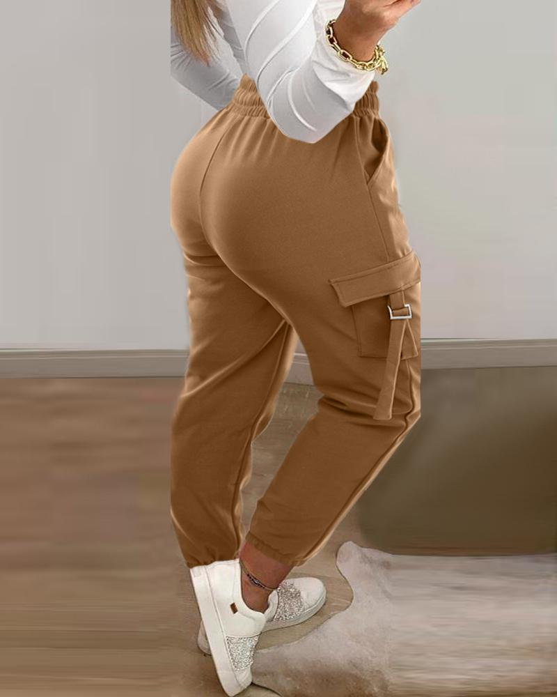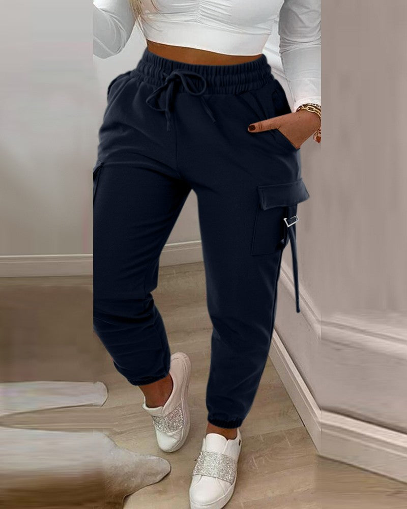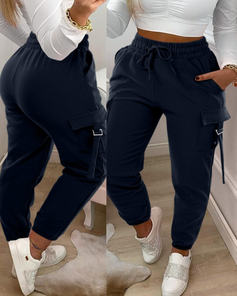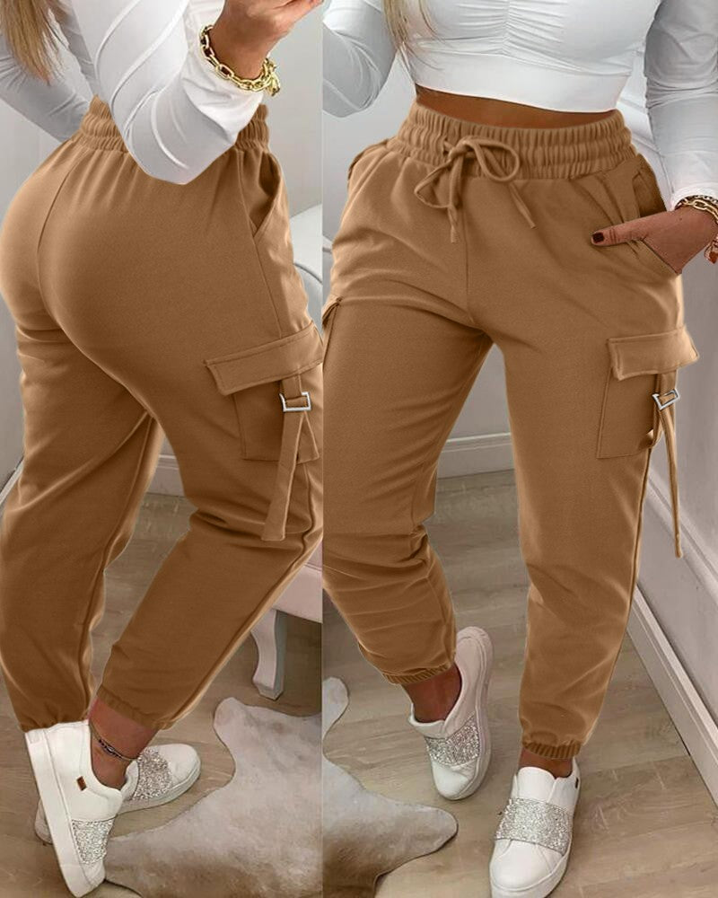 Drawstring Buckled Cuffed Cargo Pants