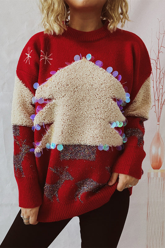 Purple Stripe Sequin Fleur de Lis Patched Pattern Long Sleeve Top