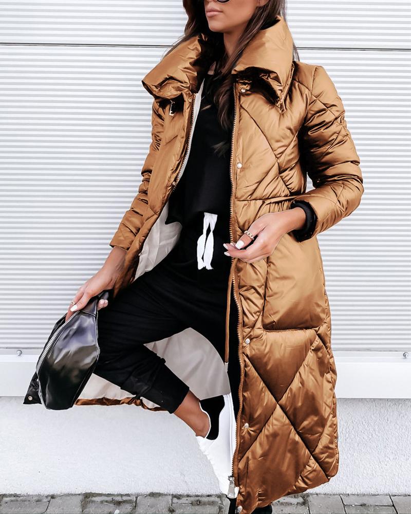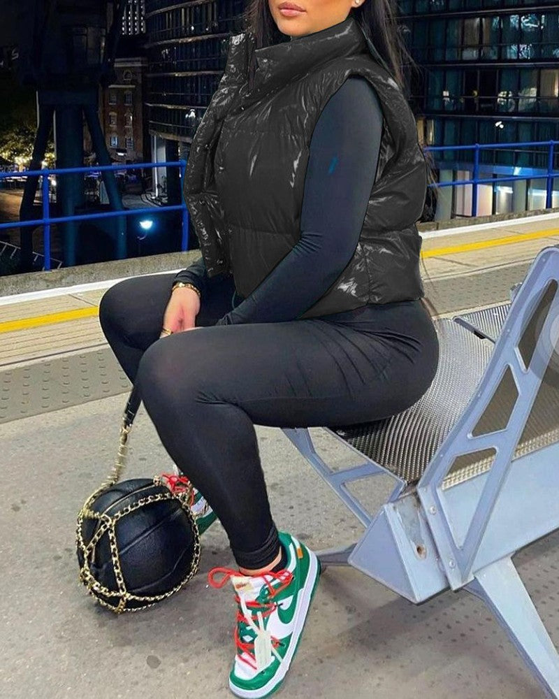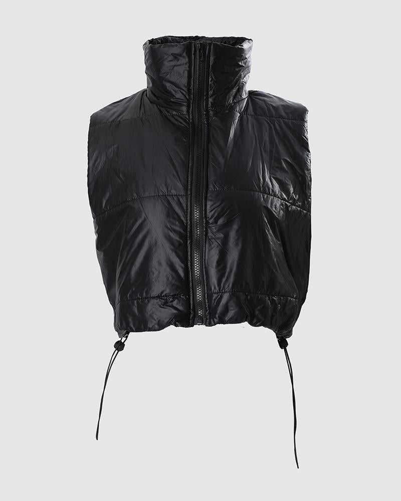 Beige Zipper Stand Neck Oversized Puffer Vest
