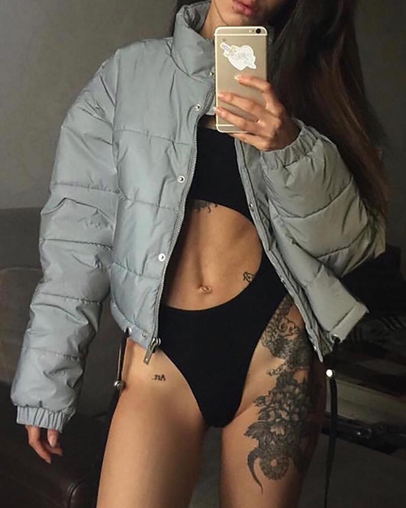 Button Zipper Design Long Sleeve Gilet Puffer Jacket