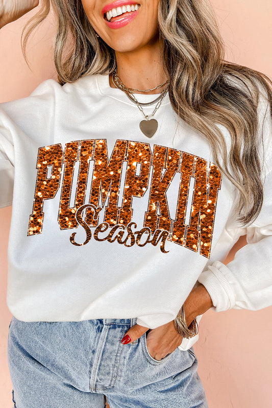 Beige Heat-transfer PUMPKIN Season Printed Crewneck Thanksgiving Sweatshirt