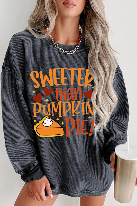 Gray Sweeter Than Pumpkin Pie Graphic Thanksgiving Corded Sweatshirt