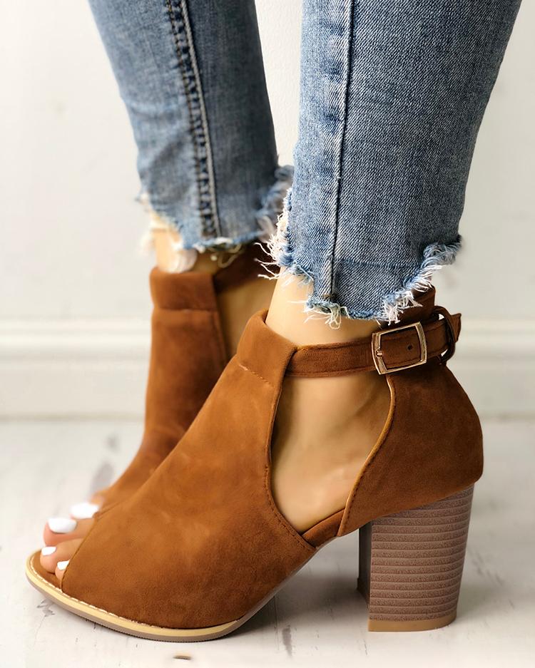 Side Cutout Open Toe Block Buckle Heels Sandals
