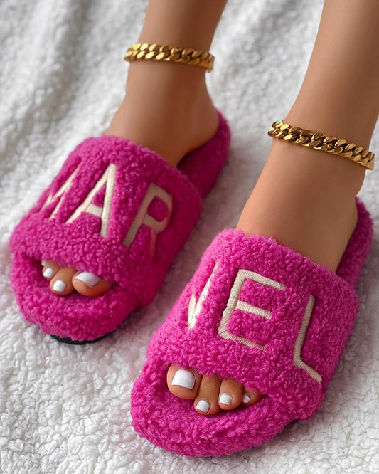 Letter Embroidery Fuzzy Winter Slippers