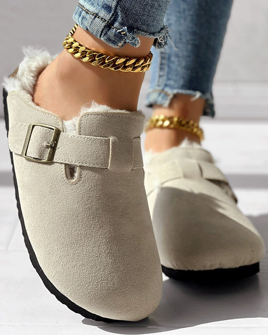 Buckled Fuzzy Lined Winter Warm Slippers