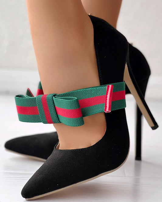 Bowknot Design Point Toe Stiletto Heel Pumps