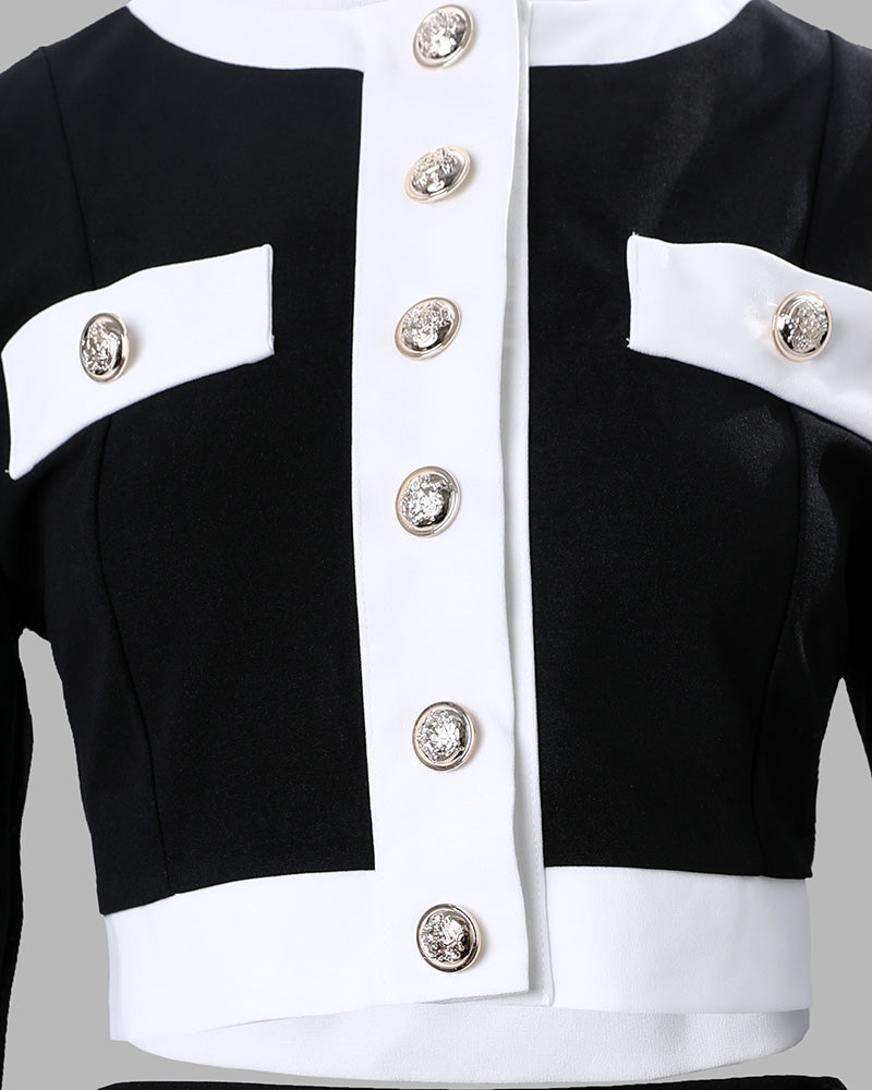 Contrast Paneled Crop Top & Pleated Skirt Set