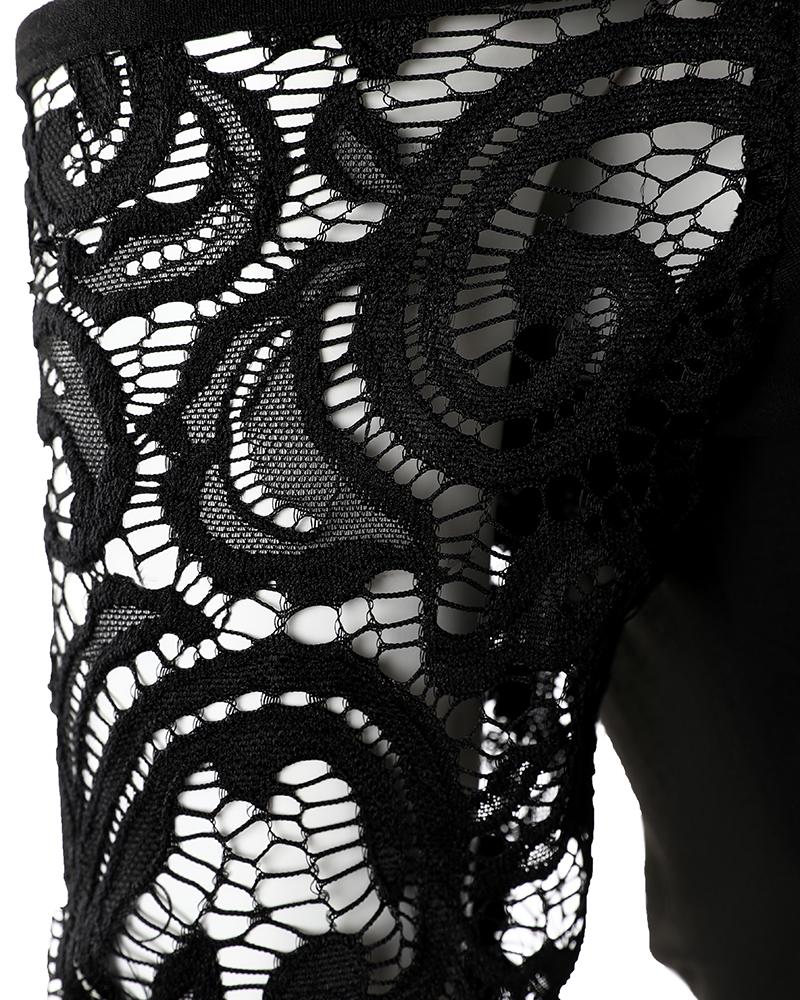 Contrast Lace Cold Shoulder Long Sleeve Top