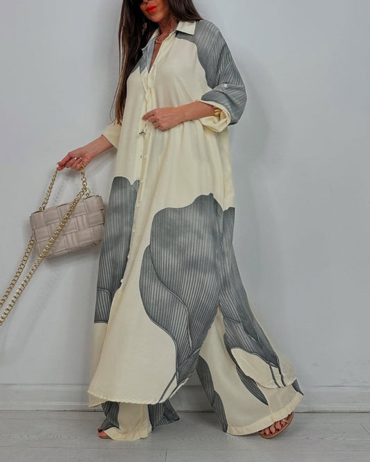 Satin Cold Shoulder Bell Sleeve Top & Pants Set