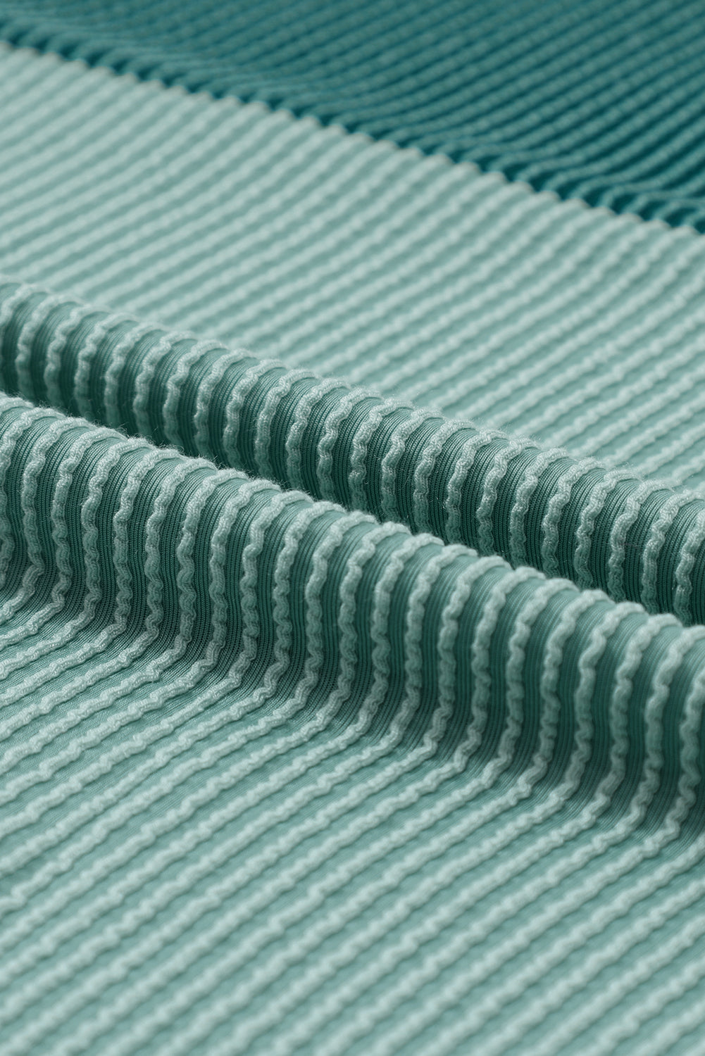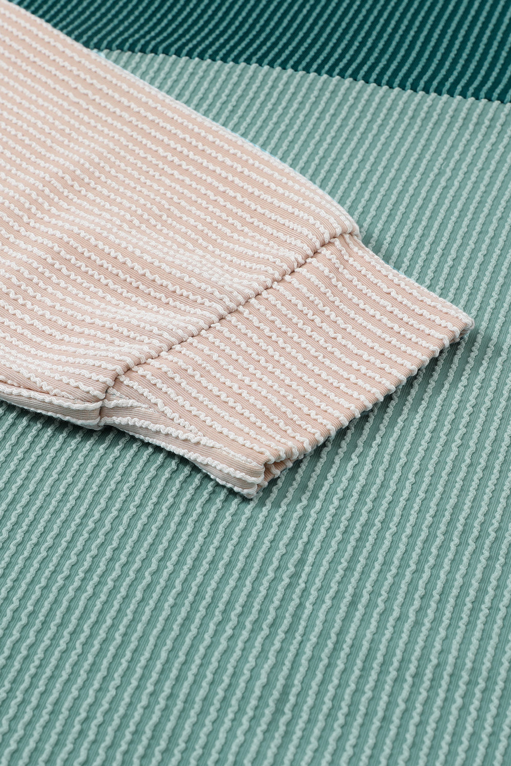 Green Color Block Long Sleeve Ribbed Loose Top