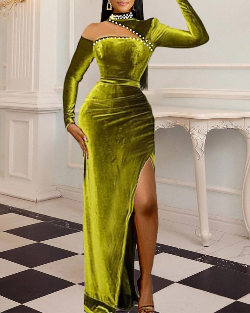 Velvet One Shoulder Chain Decor Ruched Bodycon Dress