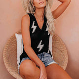 Women's V Neck Vest Sweater Knitted Pullover Top Lightweight Crochet Shirt K086