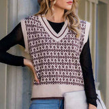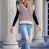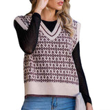 Women V Neck Plaid Print Sweater Vest Sleeveless Rib Knit Crop Tank Tops K341