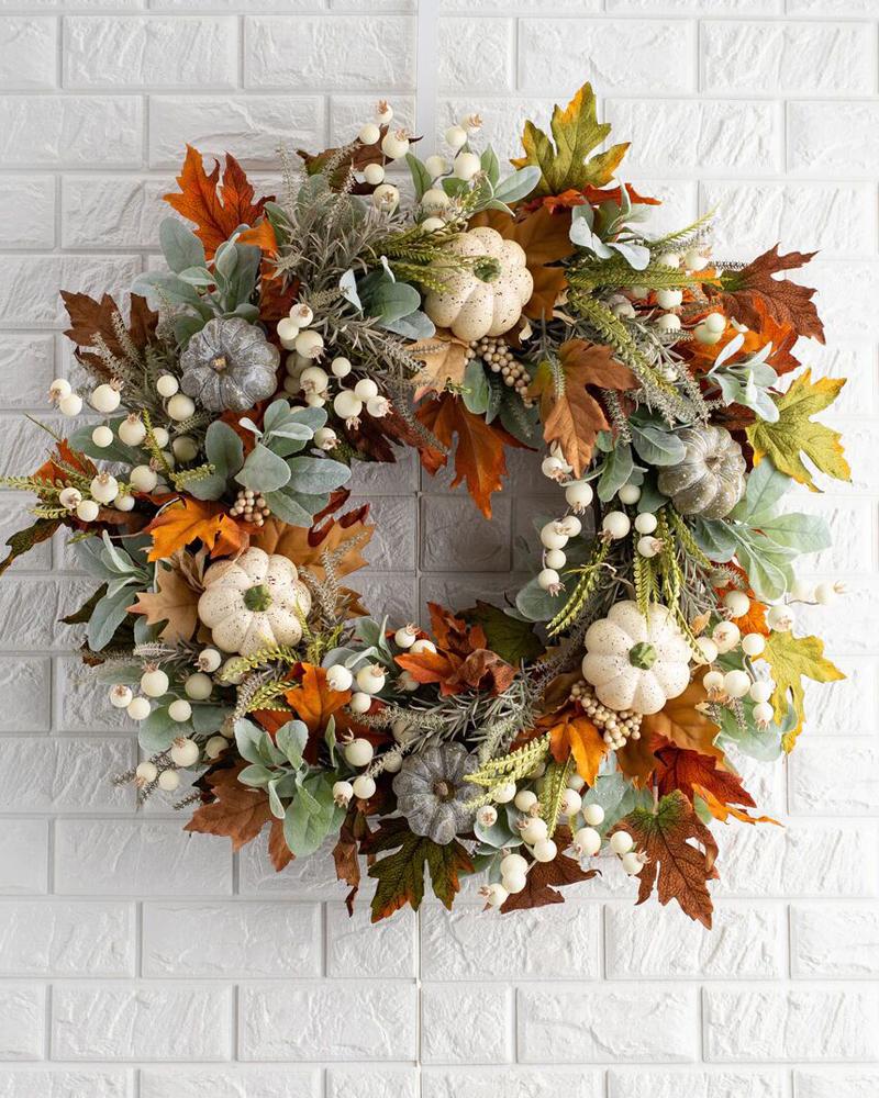 1pcs Christmas Poinsettia Swag Garland Wreath Xmas Balls Bowknot Decor Front Door Hanging Decoration