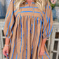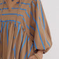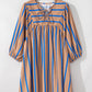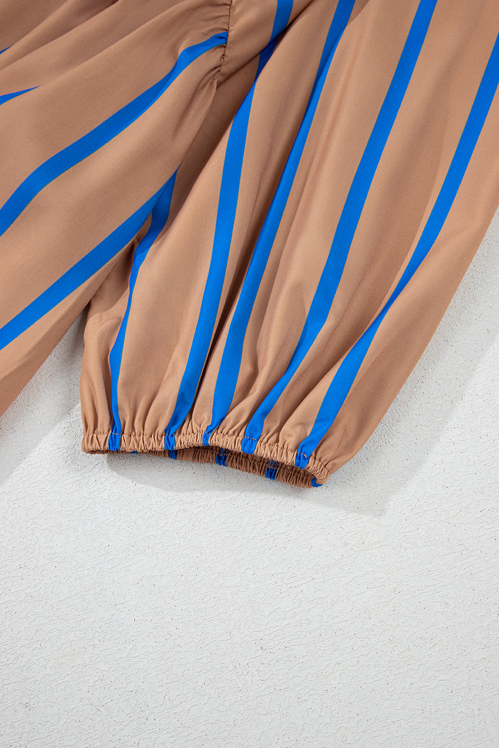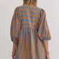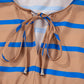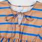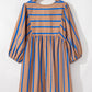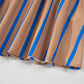 Khaki Stripe Contrast Striped Print 3/4 Sleeve Babydoll Plus Size Dress