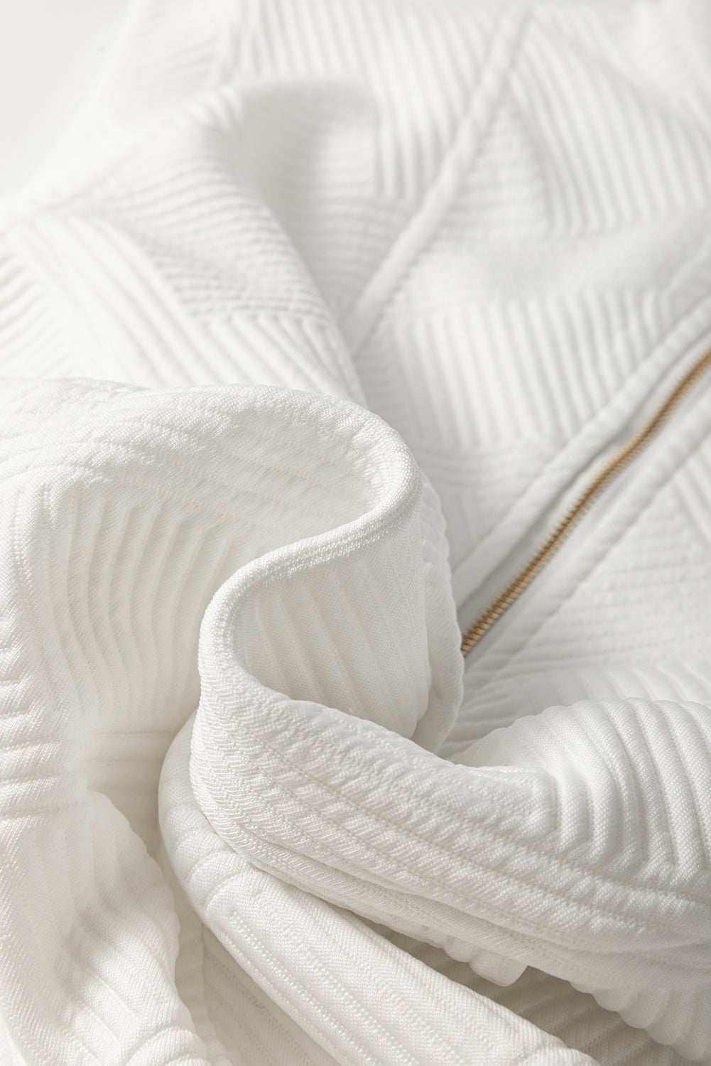 White Textured Half Zip Collared Cap Sleeve Mini Dress