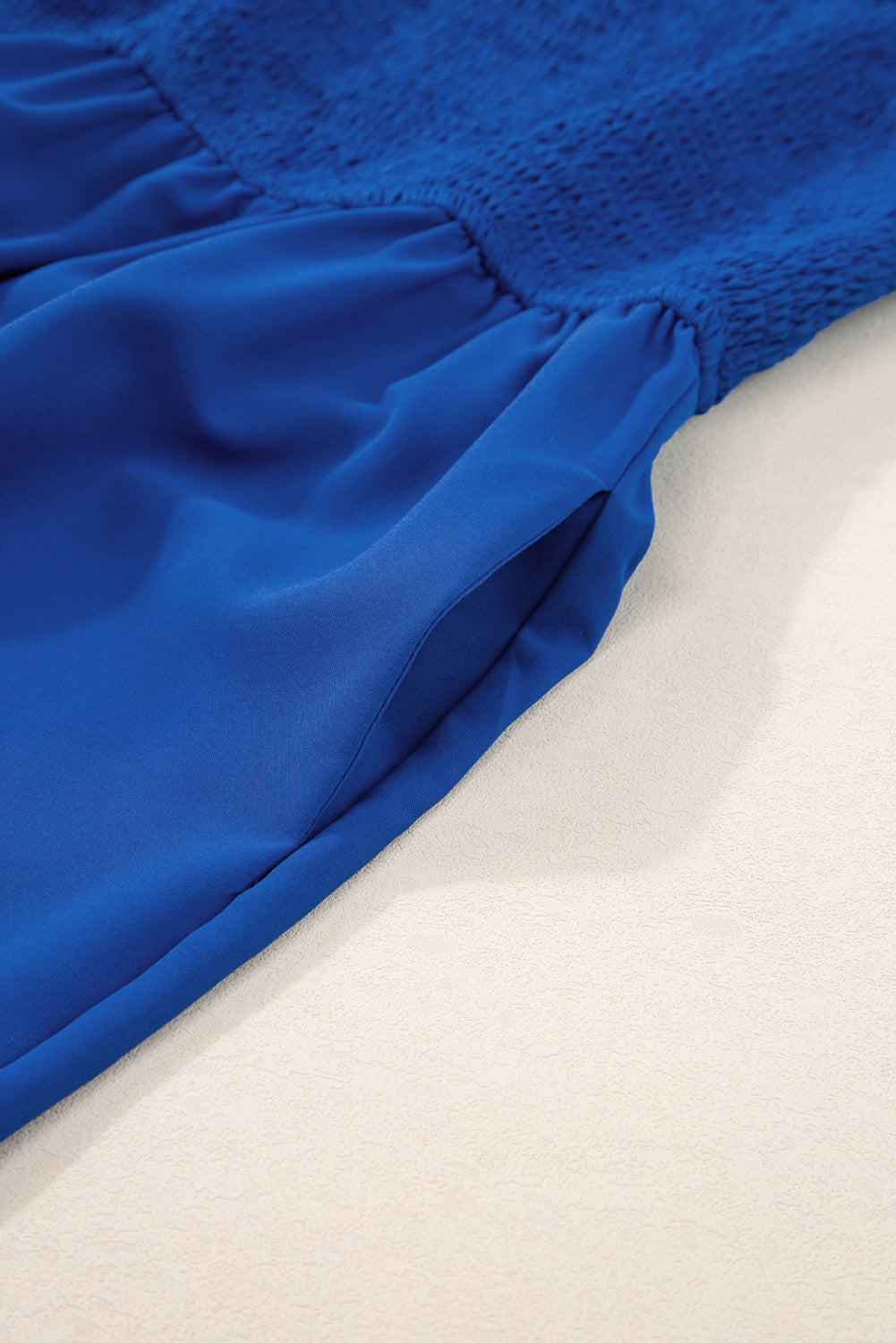 Navy Blue Spaghetti Straps Smocked Ruffled Wide Leg Jumpsuit