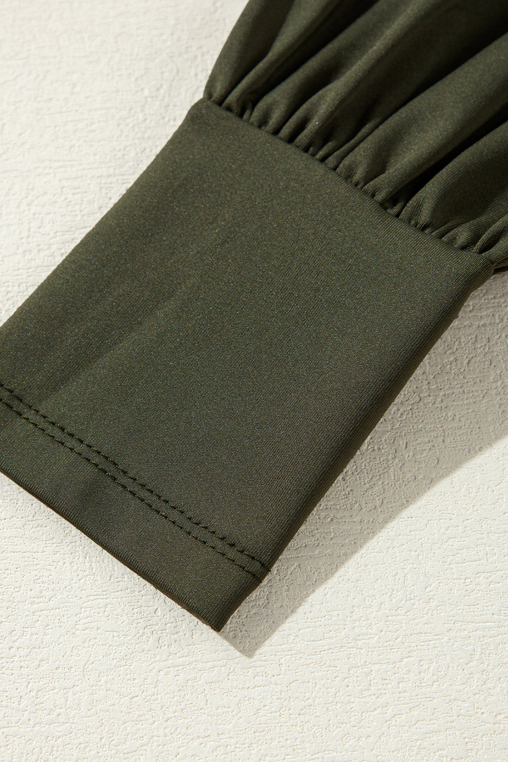 Moss Green Ruched Wrap V Neck Long Sleeve Bodysuit