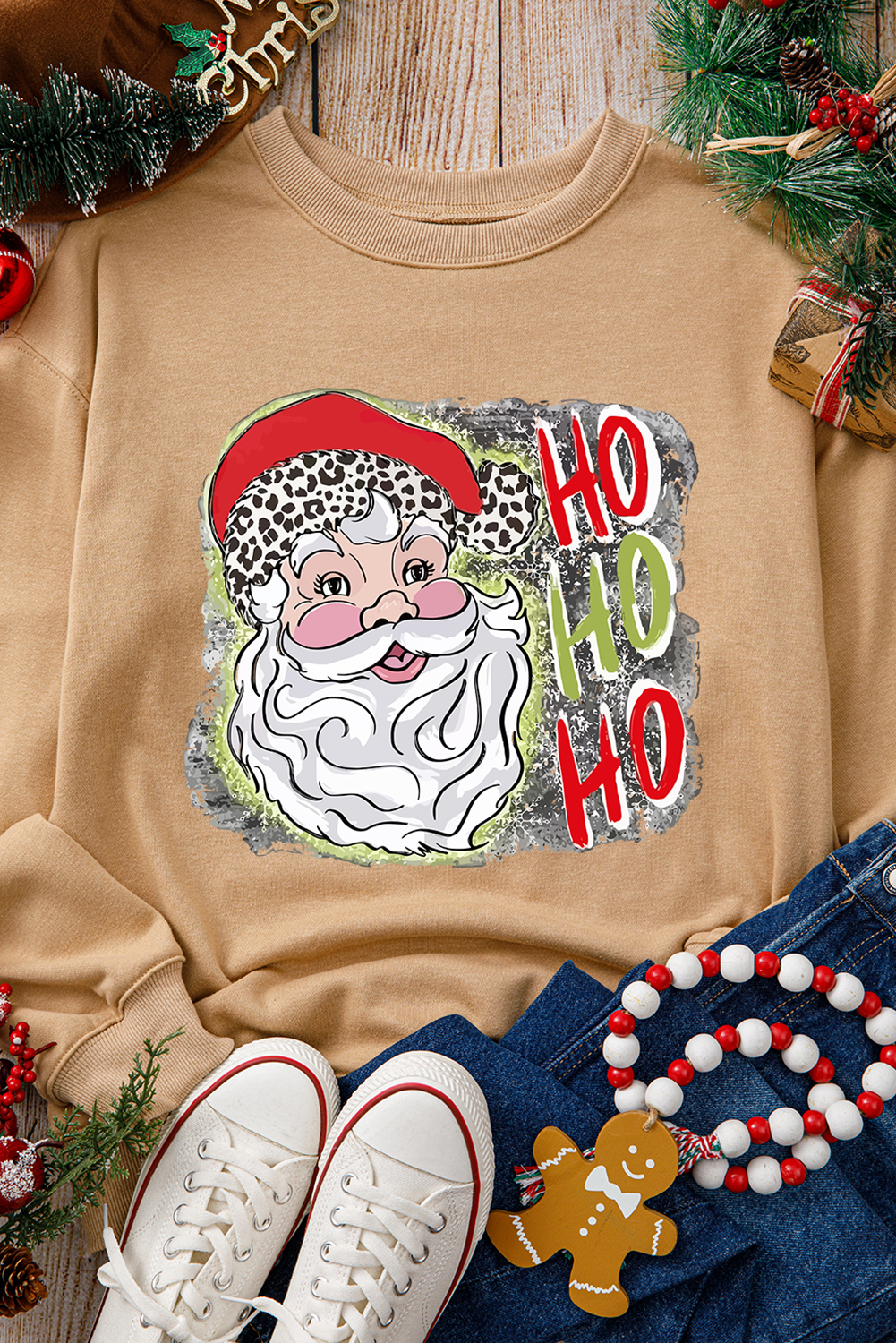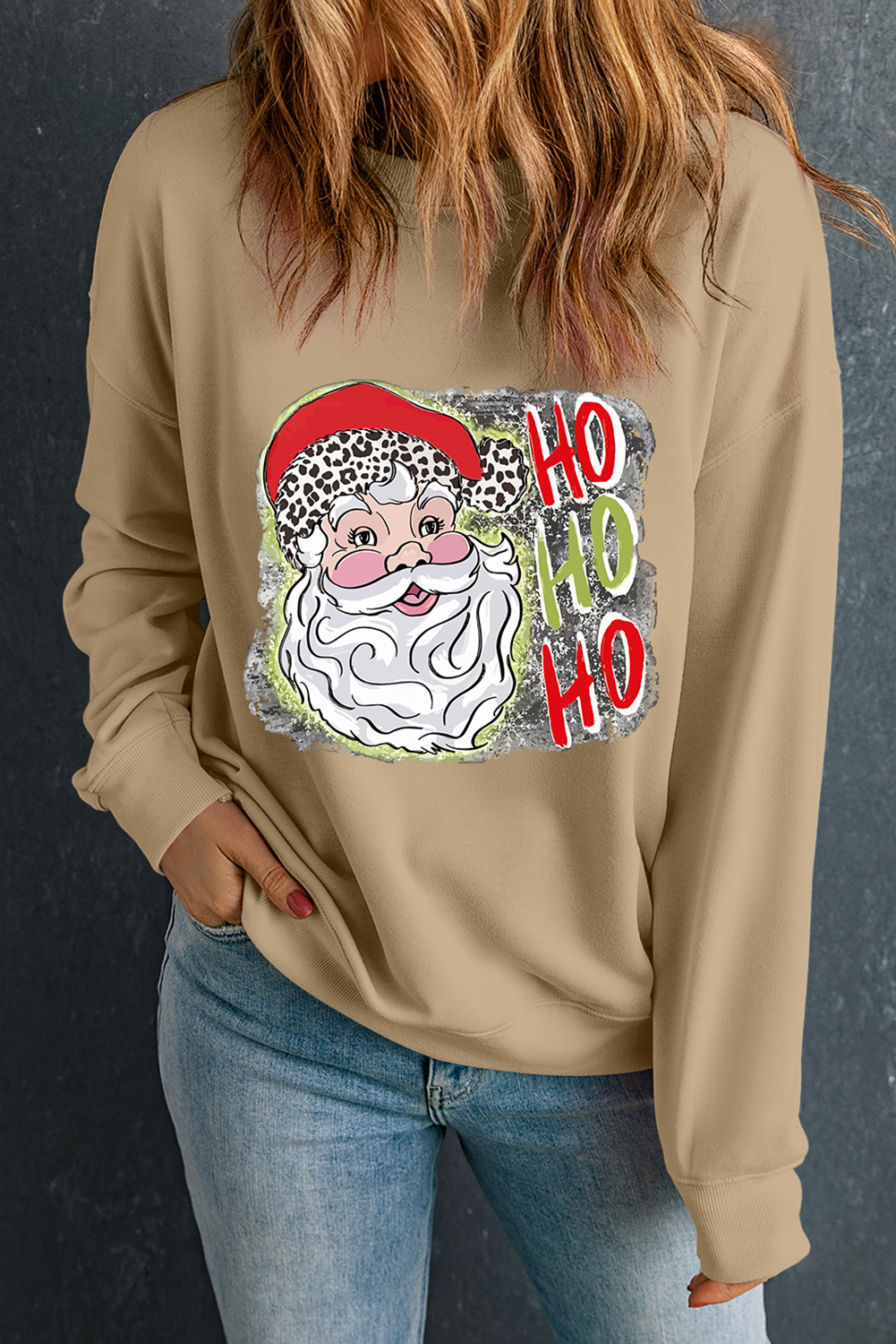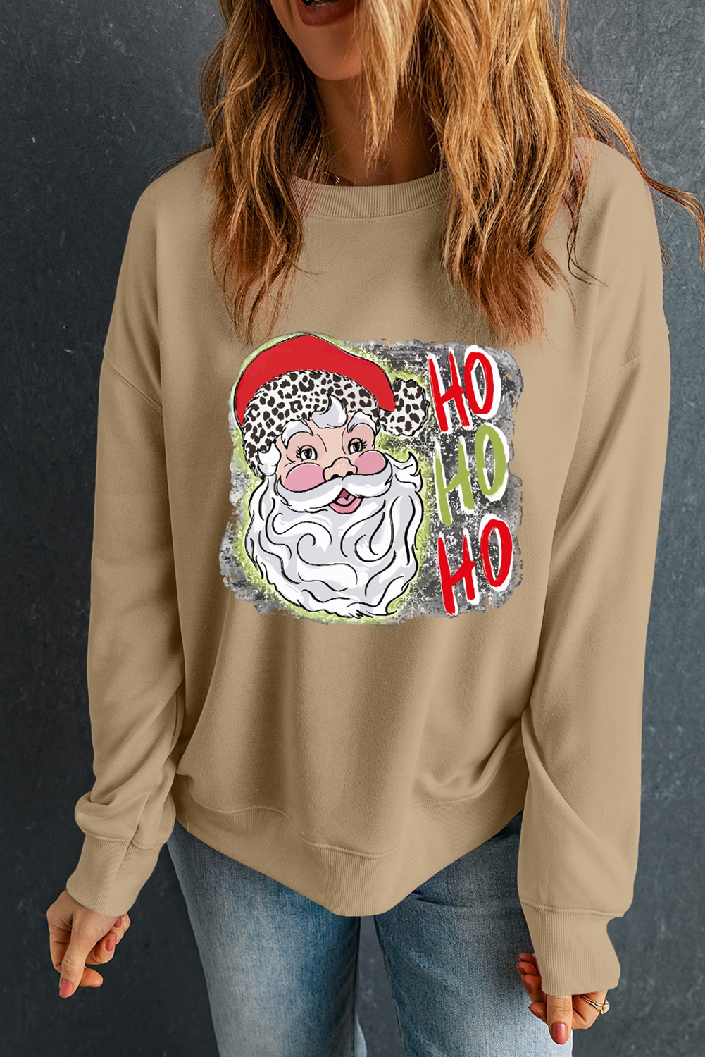Khaki HOHOHO Santa Claus Drop Shoulder Christmas Sweatshirt