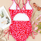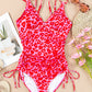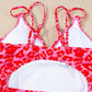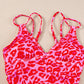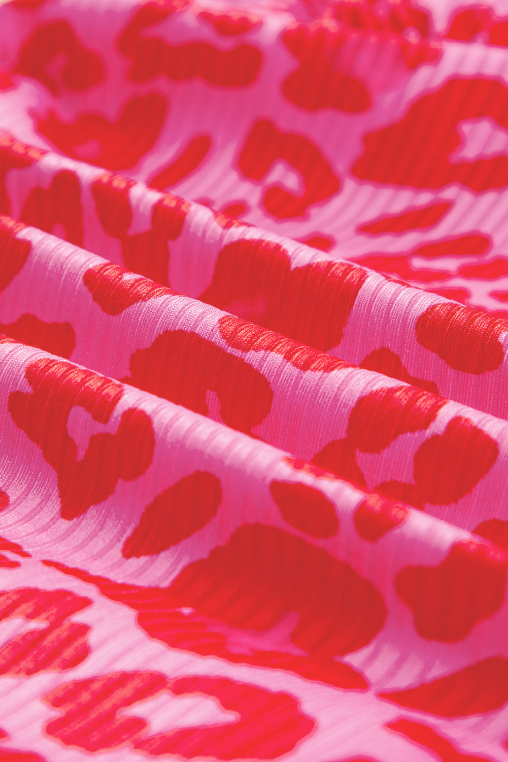 Leopard Orange Adjustable Straps Ribbed Knit One Piece Swimsuit