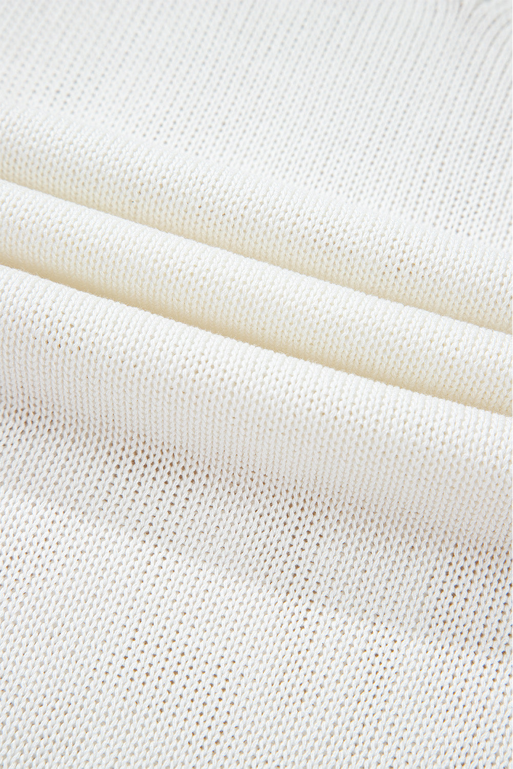 White Eyelet Knit Tied Back Short Sleeve Sweater