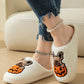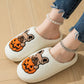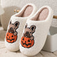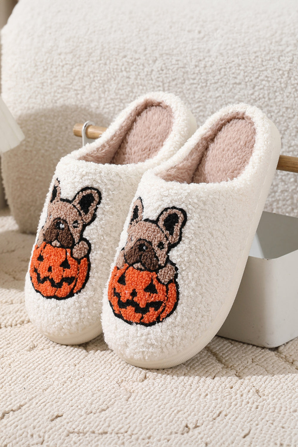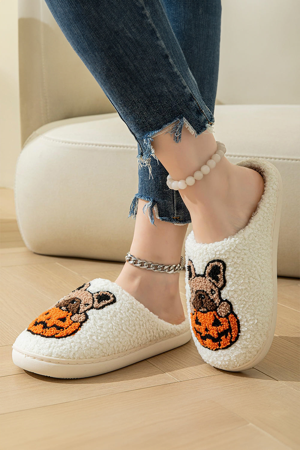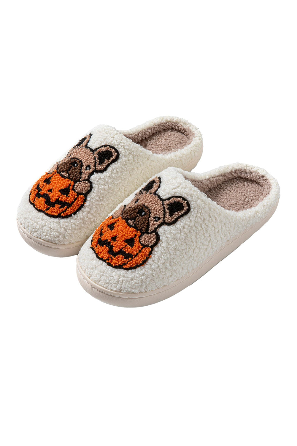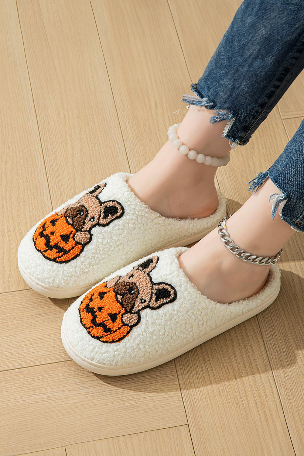 White Halloween Dog Pumpkin Pattern Fuzzy Slippers