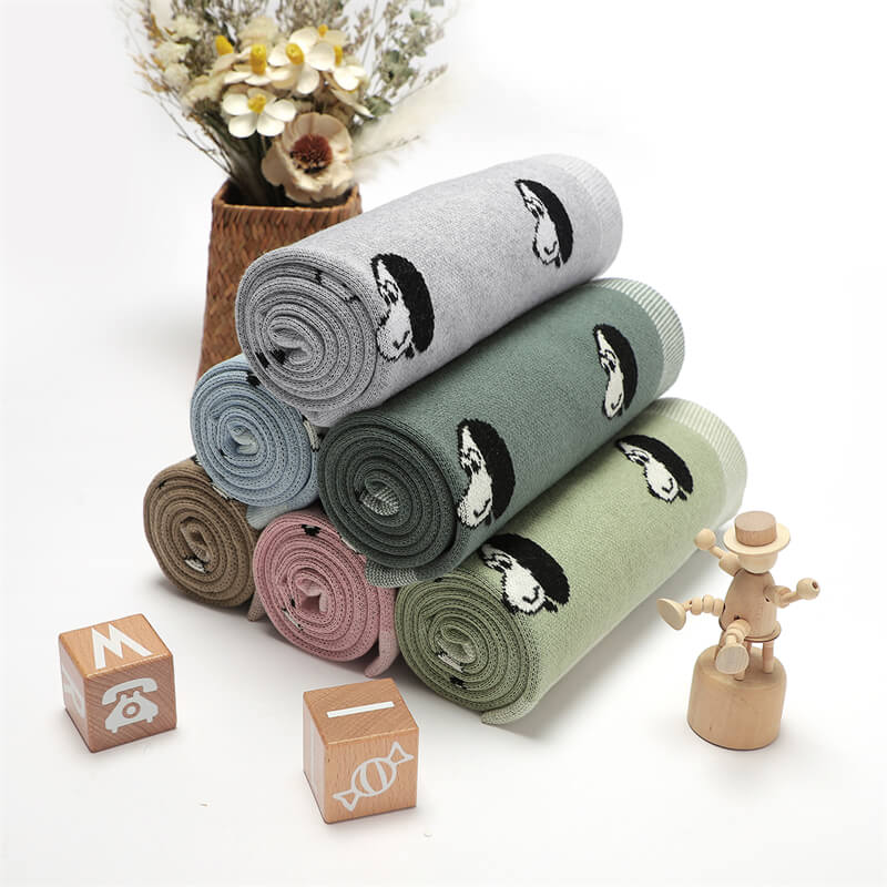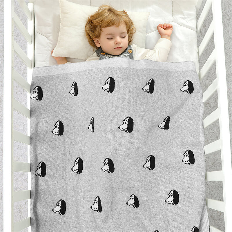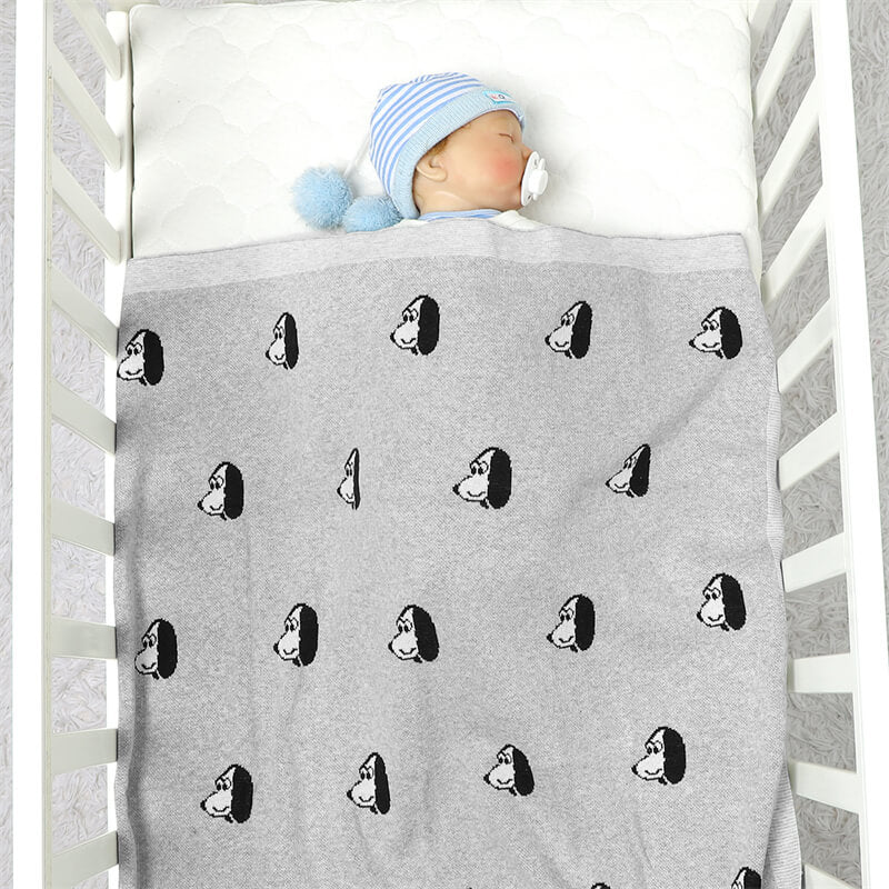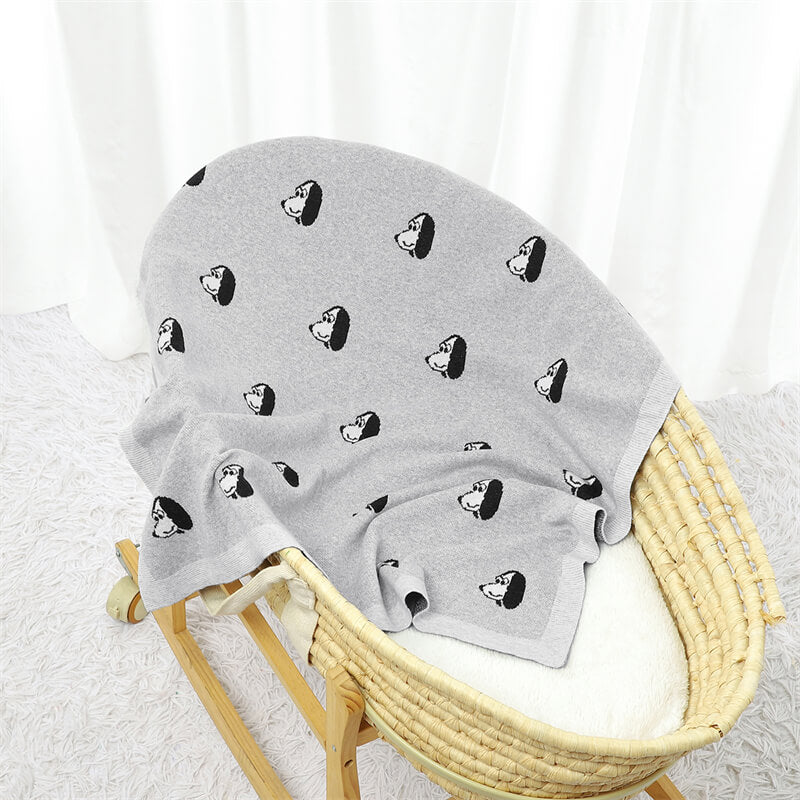 100% Cotton Baby Blanket Knit Soft Cozy Swaddle Receiving Blankets Toddler Infant Blanket with Lovely Dog A047